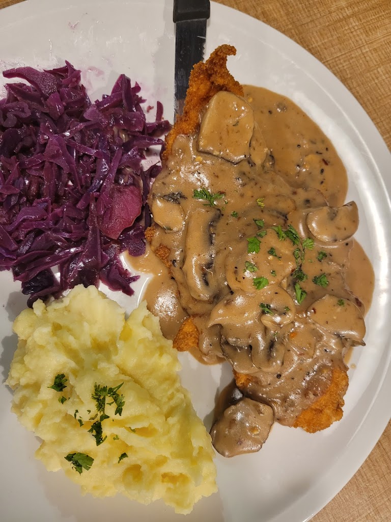 Had the homemade mushroom soup and the Hunter Schnitzel. Excellent Friendly staff and quick service. Highly recommend Parking: lol