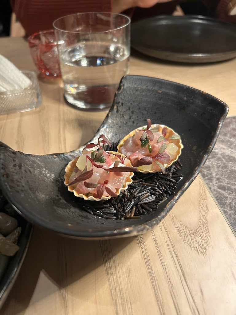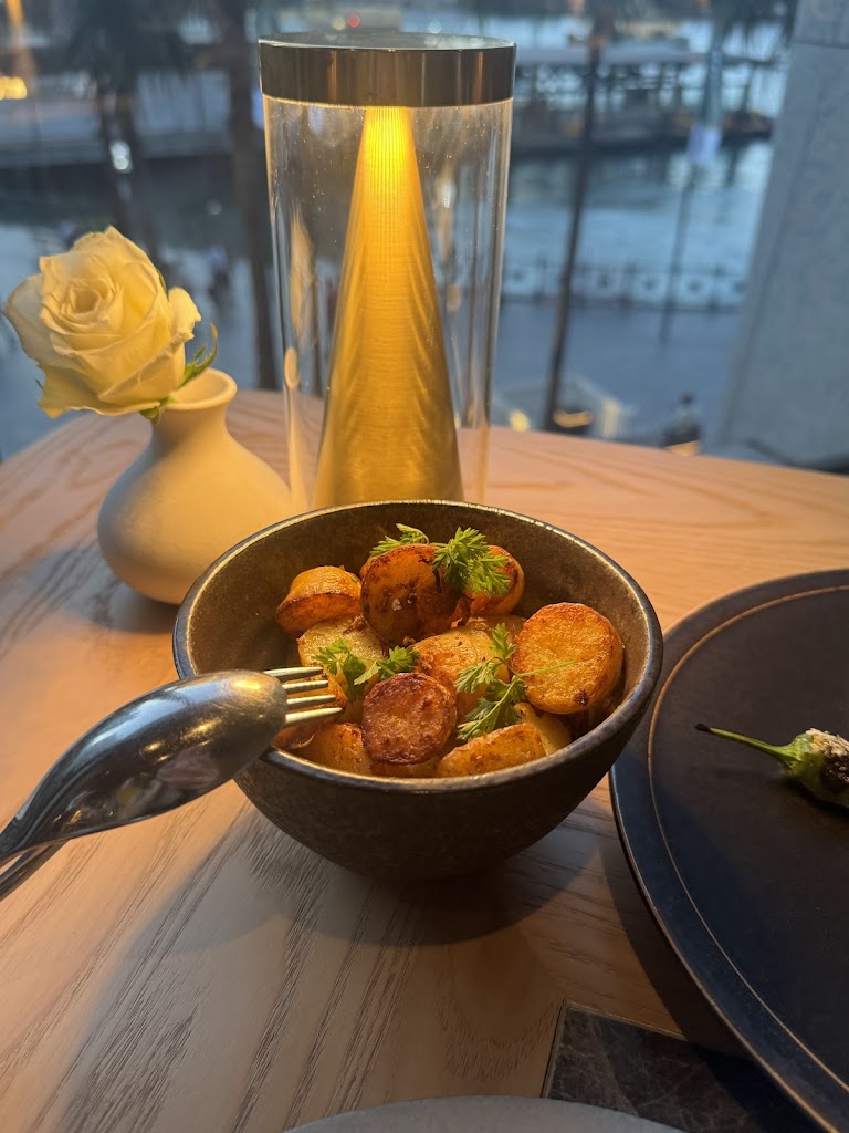 A lovely evening in a lovely space. There is attention to detail in every aspect of the meal, which feel s special and not over done. The staff are warm and helpful, a particular mention for our server Alicia {sp?} who was exceptional. The starters were beautiful, but a bit under seasoned, apart from the gunkan, which was a contender for dish of the evening. Any misses we re more than compensated by the wins. Everything was amazing, but even if they may not seem necessary, order a side of the potatoes, they made the ordinary extraordinary. I would definitely recommend a visit and the people watching along Circular Quay is a bonus.