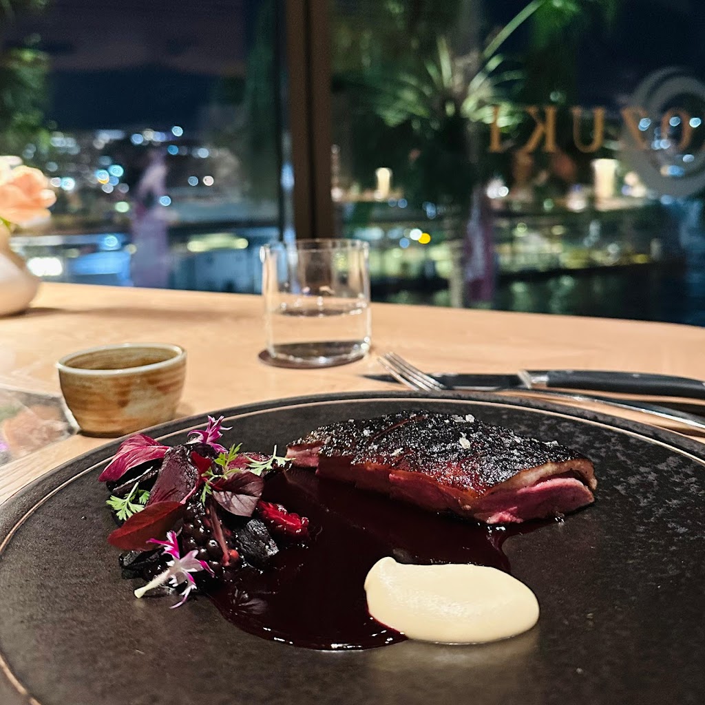 The food is exceptional, with perfectly balanced fusion. The dry-aged duck is a standout. The interior combines modern Japanese design with a touch of French elegance.