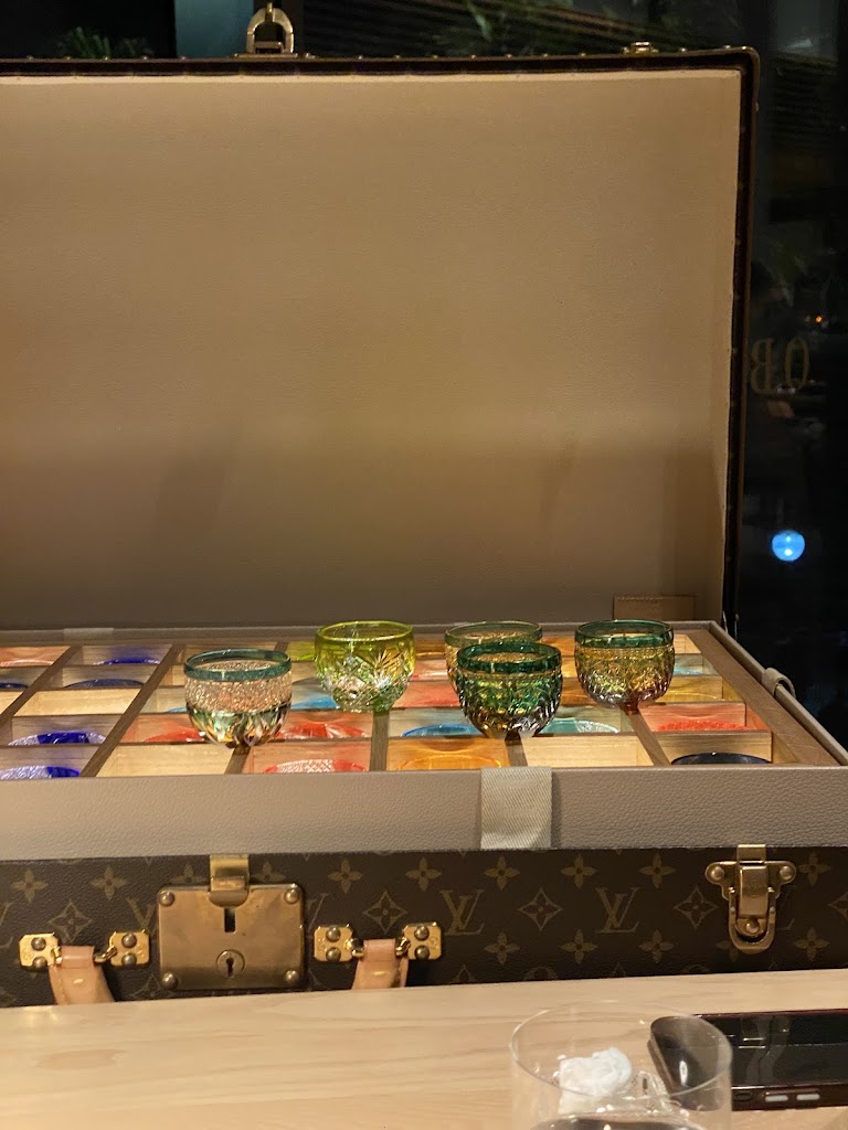 We looked forward to a nice Japanese dinner Oh boy did we enjoy the experience. The food was excellent. However the experience was so much more than we expected. The service was excellent the staff informed knowledgeable and explained the courses in fine detail. The ambiance relaxing yet stylish and a sense of subtle glamour when the glowing Louis Vuitton suitcase arrived to pick glasses for the exquisite sake. Well done all. You will see us soon to try more dishes. Thank you for a wonderful evening.