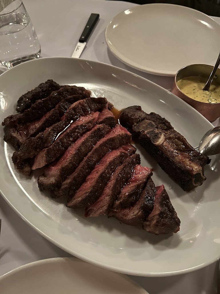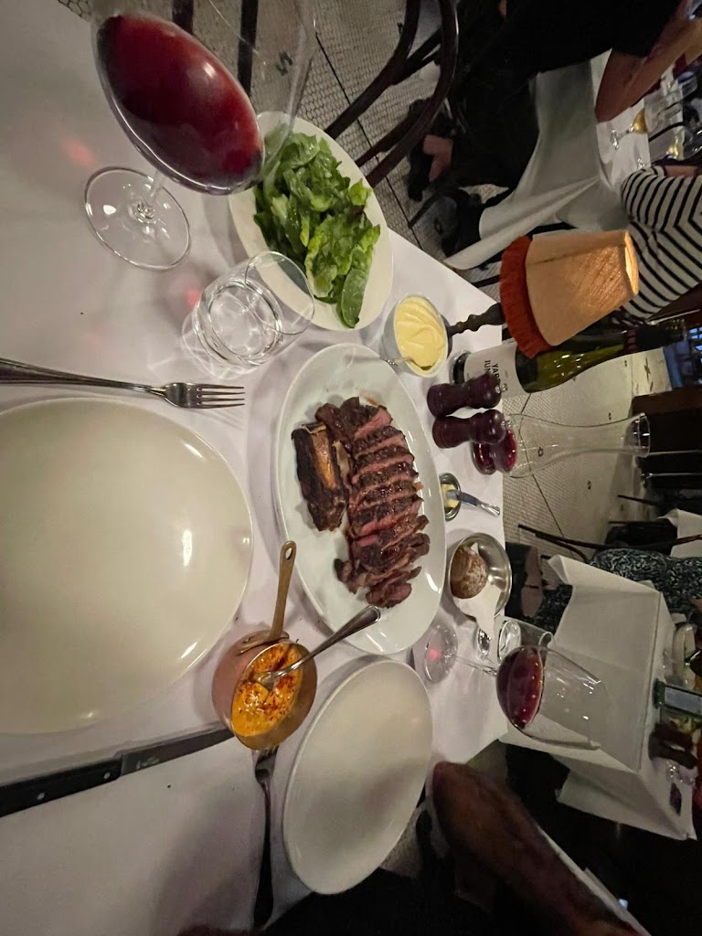 The best steak in my life. We were supposed to order a 65 dollar steak but after hearing the tempting specials we ended up getting the 270 dollar steak. Every bit was worth it!! Shout out to our waiter Maxeme who made us feel very comfortable with a kind service. He needs a raise!!