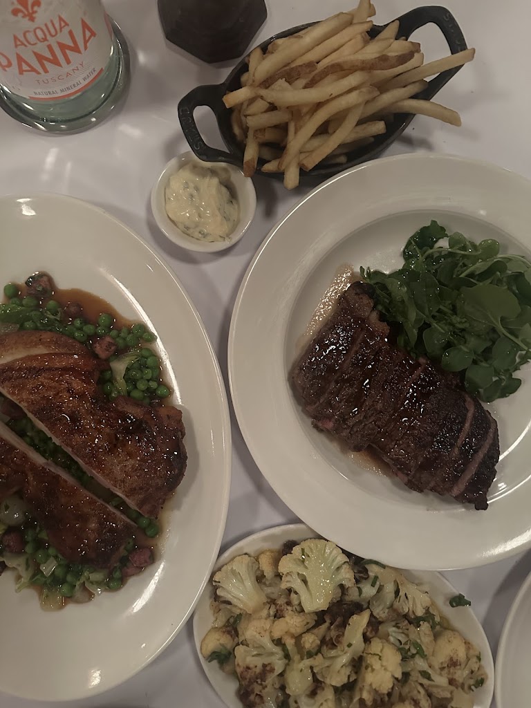 Entrees and mains was beautiful. They had a huge drink menu and lovely cocktails as well. I had the steak frites which was delicious and their chicken was cooked to perfection