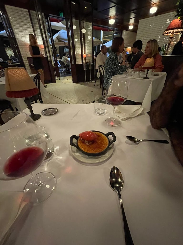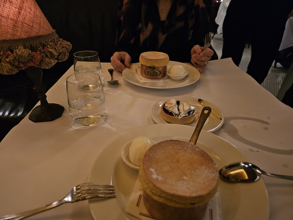 We are international foodies and impressed by this French delight. The Australian Waygu beef steak with its slightly charred finish was perfection. The steak fries were excellent, but I would have preferred something more upscale as an option in a restaurant of this caliber. The finely seasoned steak tartare appetizer was prepared tableside and was simply one of the best versions I have experienced. There was something other worldly in the way the salmon dish melted in your mouth. The Grand Marnier Souffle, equal parts tart and sweet at the same time, is worth the 20 minute wait. I reommend ordering it as soon as your main course arrives. The baguettes where rustic and authentic served with a butter we couldnt get enough of. Service was chaotic but extremely personable. The resturant is unnecessarily loud. They could easily add sound panels to control that better also the chairs werent as comfortable as they should be. There wasnt a Cote De Rhone by the glass available which I thought was silly considering the significance of the region and there are plenty of good ones available at reasonable by the glass price points. Those are more suggestions than gripes as I would highly recommend going out of your way to experience this fine French restaurant.