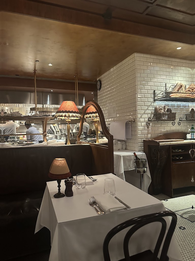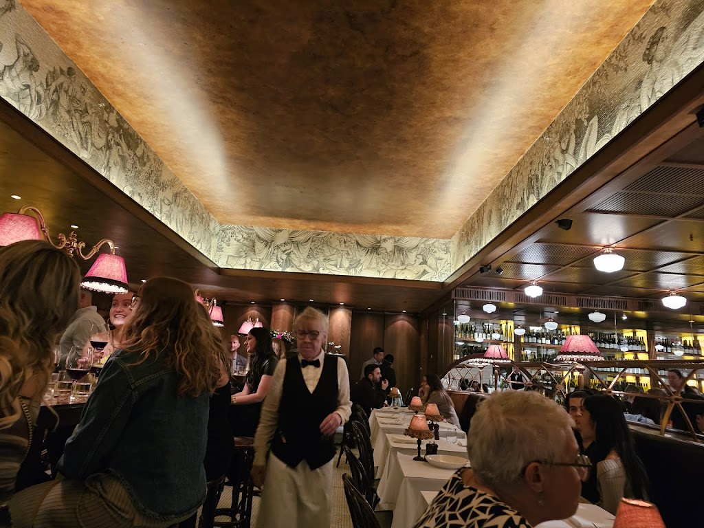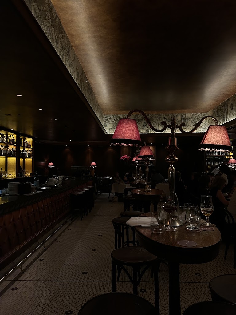 A wonderful place! The hustle and bustle, decor, crisp white linen, and waiting staff uniforms lend it a strong Parisian night out vibe. Service, food and wine also top notch. Bonus: as single diner I wasnt shoved off into some corner.