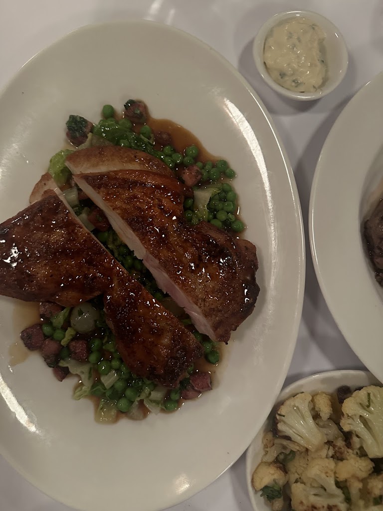 Everything was delicious. Had Kingfish, chicken, duck pie, mash, brulee, and the pineapple thing. Out server was a gem. My only regret is I accidentally skipped the tipping option as our server was a G.