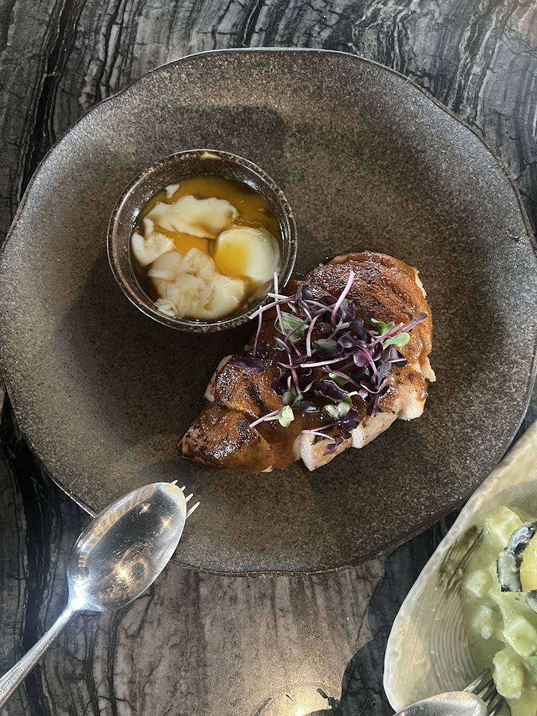 The tasting menu is great and affordable as a hatted restaurant. My partner and I enjoyed most of the dishes there. Starting with the edamame and beef taco, I really like the taco shell is still warm and crunchy and it so tasty with the beef together. The kingfish is so fresh and good with the dressing and diced grapes! We add the scallop dish for entree as I really wanted to try. The plating for the scallop is pretty, but the flavour is somehow not so surprising. Sushi platter is good, I can taste the freshness in the sashimi. For the bug tempura, its really well cook as the bug is very tender, but I would prefer the tempura crumb than batter (only my preference, the batter is actually not bad). The main is tenderloin with foie gras, which is our least favourite, the steak itself is so tough and chewy, a little bit of let down. Brussel sprout is super delicious, I dont usually love veggie, but this one is just so good. And the whisky fondant, the best!!! The rich chocolate flavour with a hint of whisky, and the coffee ice cream!! SOOOO GOOD!