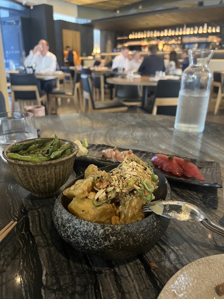 Lovely food service n ambience We ordered the Tasting menu n it was superb. I loved all the courses but the standouts have to be the edamame fried with special spices and the Brussels sprouts cooked perfectly in some v umami dressing n flavours so delicious!! The sashimi n sushi was so fresh melt-in- the mouth , texture smooth n u can taste the sweetness of the fish If I could critique one thing is that I would have liked the courses to have been served slower n not come so quickly one after another ; they should have paced it better as to not rush you to finish as your next course is sitting there waiting for you . I did tell them but they still continued!! Overall was a very lovely evening of good food n ambience . We shall be back! Dietary restrictions: Dietary restrictions are well catered for they would ask if you have allergies or food intolerances or diet requirements/ preferences