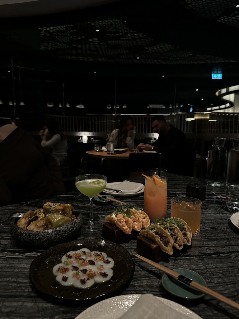 Great cocktail menu, the wait staff were so attentive and the food was amazing. We got Wagyu tacos, sashimi, scallops, the scotch fillet, mushrooms, fondant and the pavlova. The wagyu scotch fillet was a standout. Definitely worth it.