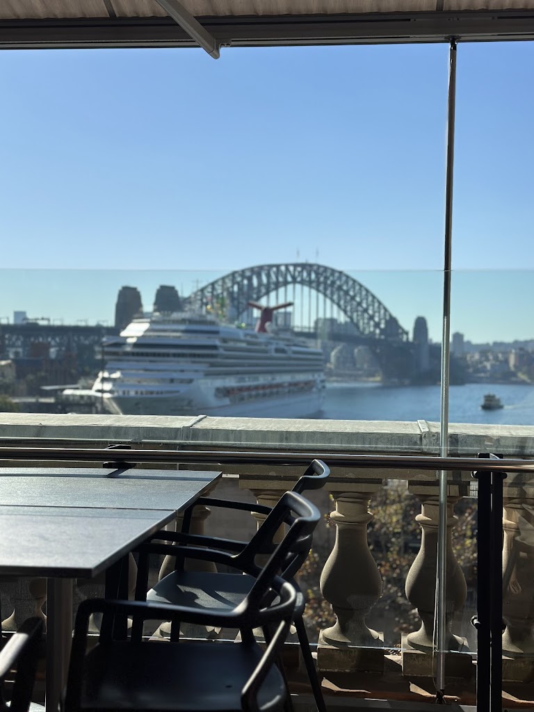 Cafe Sydneys location overlooking the Harbour Bridge is unbeatable, especially from the patio area. They offer a good drink selection, and service is solid. However, the food is just average. If you prioritize ambiance and drinks over food quality, this spot might still be worth a visit.