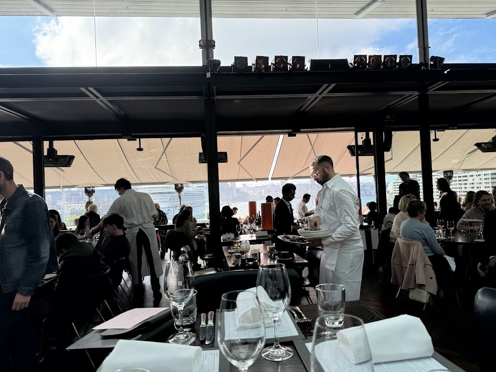 We arrived as a group of nine for lunch, including one child. The venue is lovely; you take an elevator up and are welcomed by a large reception desk, a lounge, and steps leading to a spectacular view. Several diners in our group had visited this place over the years on trips to Sydney, but let s face it it s a tourist trap, not for good food. The $1500+ bill was not worth it, and I felt tricked into an overpriced menu while others had the à la carte option. Maybe it was good once? If youre given the fixed menu, Id suggest walking out it was bad in every sense. Value = Terrible Quality = Worse We were told wed be seated inside during booking, which was fine, but the harbour view is spectacular. I d highly encourage seeking an outside table for an unobstructed view. Upon being led to our table, we were almost seated when some odd commotion occurred. The maître d was told to take us back to the lounge to wait for our table, which was weird because they all had headsets. So, we walked back down the steps, up the steps, and sat at the bar for about 45 seconds until we were re-gathered to walk back down and up the steps again to our seat. It was confusing, as we had a menu with no prices, with meals that didn t match anything anyone else was eating (I would have loved some Oysters). We sat for a long time, surrounded by staff and managers, though it wasn t clear what any of them were doing. I stopped a staff member and asked if we could order drinks and enquired about the menu. He said he d organise drinks and started to attend to our table, but called a manager to explain the menu situation. Apparently, we didn t have an à la carte option and were informed the previously undisclosed price for our meal (as the menu had no prices) would be $140 per person. This wasn t ideal as we were very keen to eat, but rarely would I have three courses for lunch. The fixed menu included a limited selection of bread (naan), a starter, a main, and a dessert (we were told to choose one of each) but we could upgrade to additional items for an extra fee. The manager then informed us we should have been told earlier during booking, but if we wanted, we could opt for the à la carte option however, we d still be subject to a minimum $140 charge. The bread covered in oil came and sat on the table while we waited for water and drinks. After a few minutes, we started eating the bread, and I asked another manager if we were supposed to have side plates to avoid oil dripping all over the table it wasn t great. We had octopus starters, which was so salty it made my stomach turn. I ate about half of it. It was salt-flavored, not fresh. Drinks were slow or non-existent, considering the number of staff buzzing around. You could get them, but it was more like a bistro where you d wave to someone. My water spent more time empty than full. Mains came and the fish was okay but pretty much on the same sauce base as the octopus. The weirdest part was the $140 child s meal, which was so sweet that the kid couldn t eat it. We thought the child was joking, so a few of us tried it; it was like candied tomato penne. Disgusting not suitable for anyone. What kid doesn t like sweeter things? The cheesecake and cheese platter were more suitable to be shared. Several people ended up with full cheese platters when we d probably only wanted one or two for the table. It seemed wasteful and haphazard. If you re going to serve grapes on a cheese plate, they should be fresh and pruned. By this point, I had to leave the table, as the excessive salt and poor service were driving me crazy; I left and waited for the group to finish and meet me downstairs. Overall, it was a completely unremarkable experience that I couldn t fully endure. For such a reputable place, I was extremely disappointed. It was amateur hour on a Monday perhaps they had their apprentices running the kitchen. The value was zero, and I could never recommend a repeat visit.