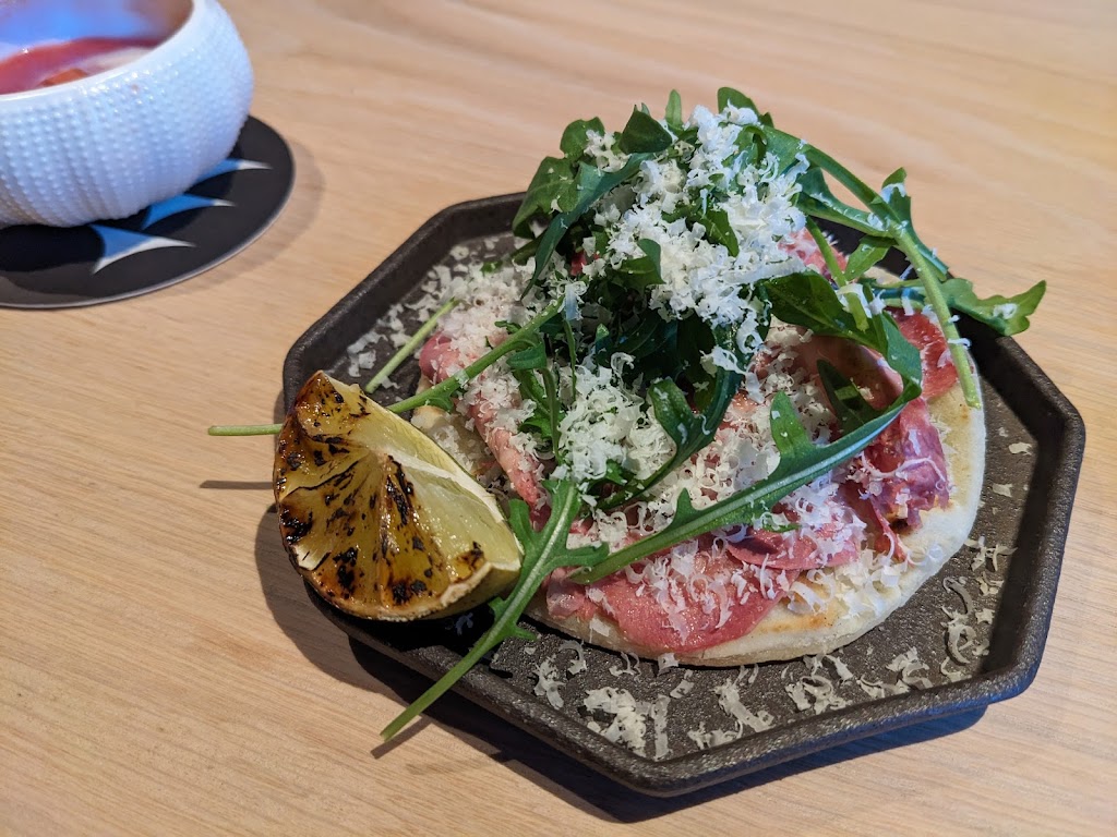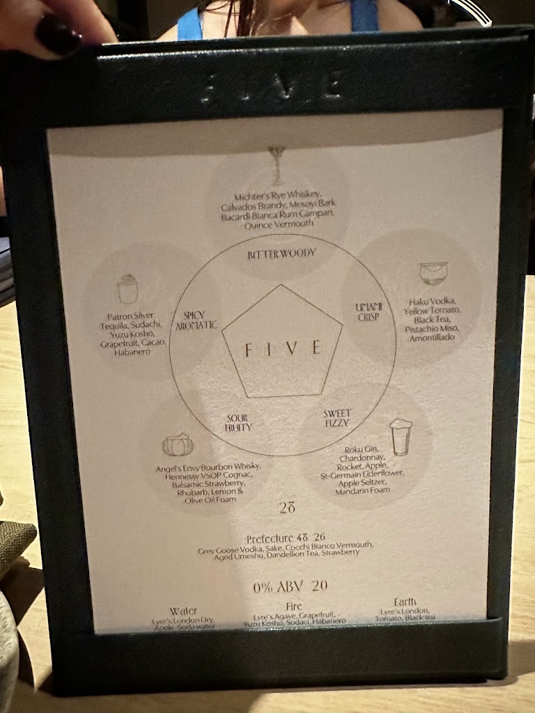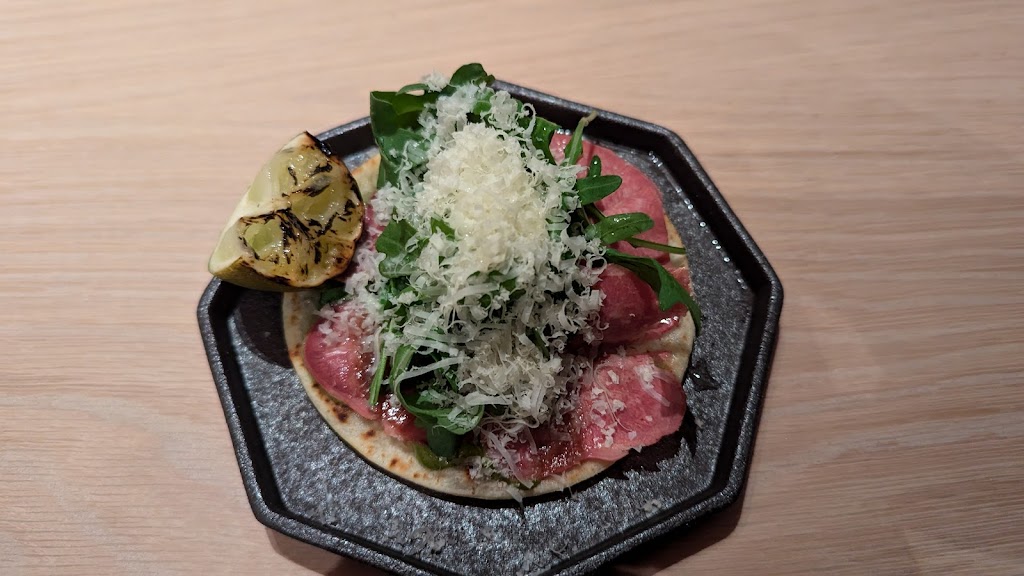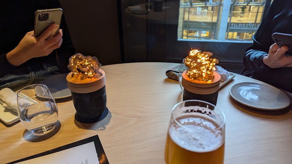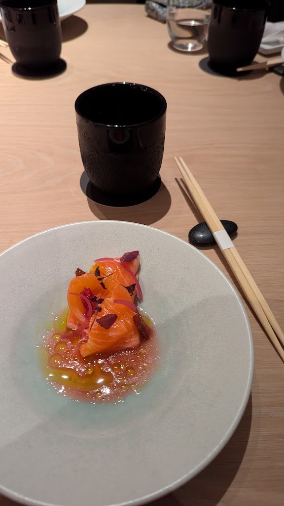 Amazing dining experience. It's Japanese cuisine with a European influence. The restaurant is located in the Old Foley Brothers building which was an old warehouse, and has been converted into a very well designed complex of Japanese inspired venues, including Five restaurant which my review focuses on , an amazing Whisky Bar, (Had a quick pre-dinner drink here), a very fine Patisserie, a Robato Grill restaurant, and a traditional Kaiseki restaurant. The cocktails were amazing and very creative, all food was creative, delicious,beautifully presented and all flavours well balanced in all dishes. The chefs and wait staff also gave a brief but detailed description of each dish as it arrived. Service was excellent, some of the best I have experienced in recent years. It was also exciting to be able to see the chefs in action in a semi open kitchen. This establishment has only recently opened but I would expect it's going to be very popular. The lift up has the Tokyo Subway map on the wall and features subway sounds as it glides smoothly between levels. Oh and the artwork in the toilet was amazingly clever, quirky and creative. Have fun finding Uma Thurman in her Kill Bill outfit and Homer as Mr Sparkle among a crowd of many others! Hopefully I will be able to come back to Sydney for more soon 😋! Thanks Team 5 and Prefecture 48 for a great experience