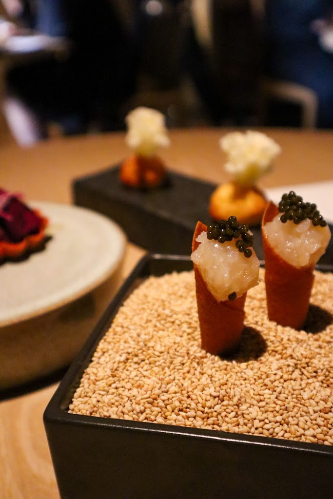 Gomi. Goshiki. Goho. Gotei. Gokan. Five introduces a Modern European cuisine guided by Japanese finesse, expressed through the five core elements — taste, colour, cooking, moderation and the senses. This guiding philosophy shapes the seasonal tasting menu with an experimental and progressive approach. Relax and soak up the experience in a wabi-sabi inspired setting, where the ambience enhances the discovery of each carefully interpreted element on the plate.