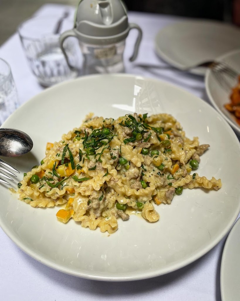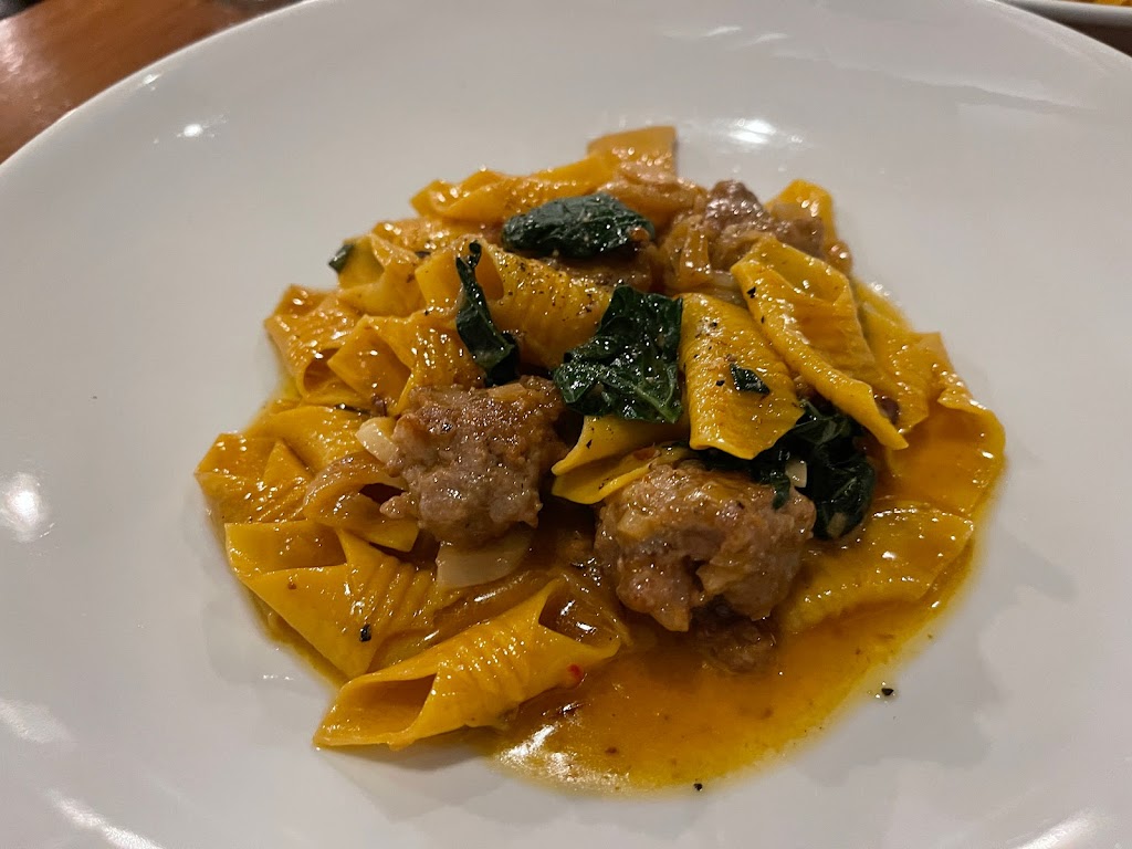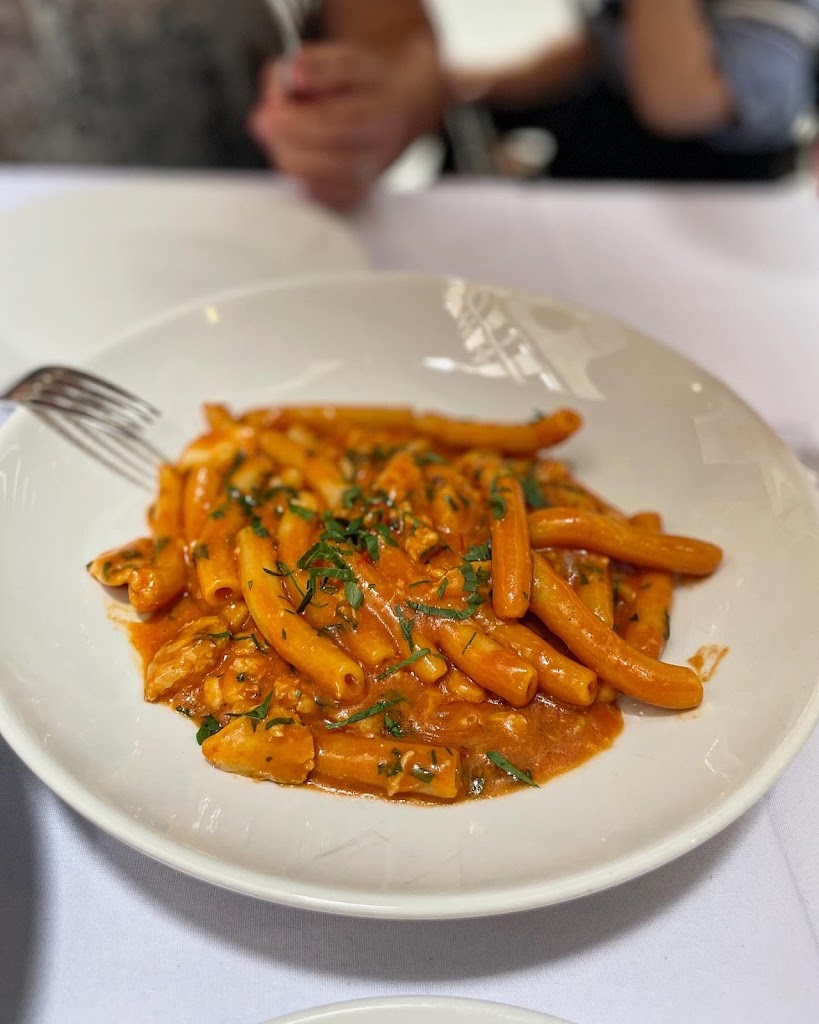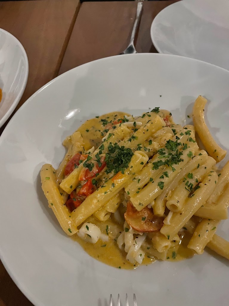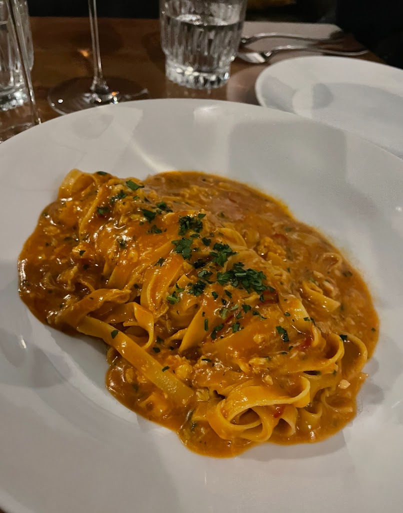 Absolutely delicious pastas and starters! Pasta portion sizes are more decent than other fancy Italian joints I’ve been to. It’s just decent good Italian food. The atmosphere on the other hand lacks a little bit of a vibe or ambience, but all in all a great place for some good food. Star dishes were the lemon calamari pasta which was perfectly balanced and took our whole table by surprise, along with the crab pasta which is a clear winner for any seafood lovers. You’ll definitely be able to taste the crab throughout.