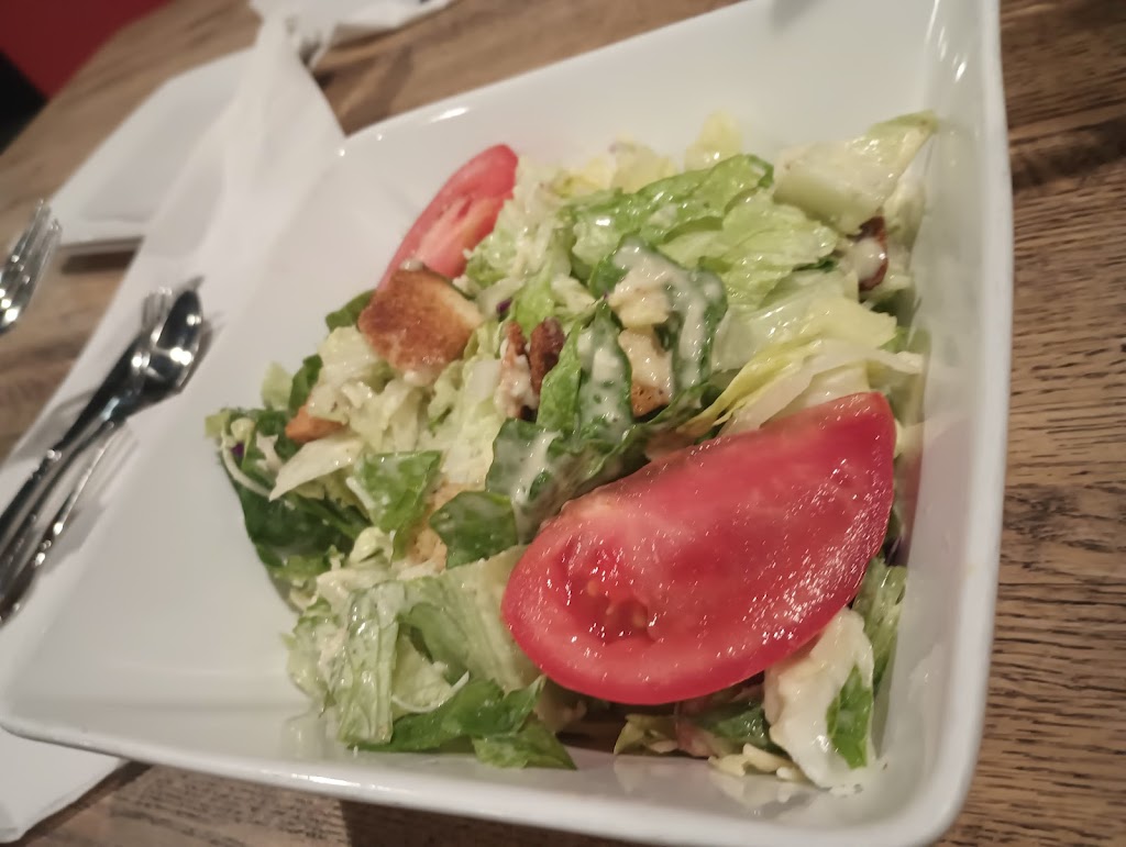 Average food ..a little expensive. Very simple ambience. Had a small dinner salad that was a good price. Nice young lady server. Wife had the Caesar salad that was pretty weak, not good croutons and no Parmesan cheese.