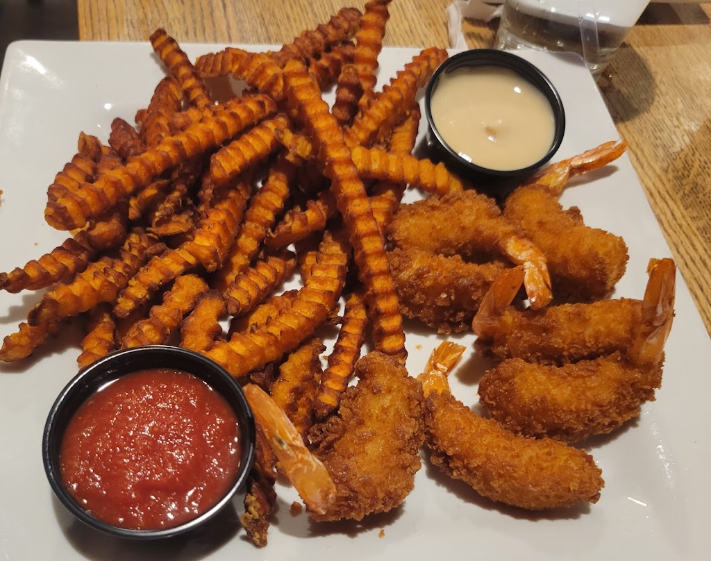 Clean. Great beers. Fast service. We got the hot Turkey sandwich, BLT, and shrimp dinners. Each came with a side. About $45 very worth it. Delicious everything. We live 2+ hours away and have saved this location so we can come back.