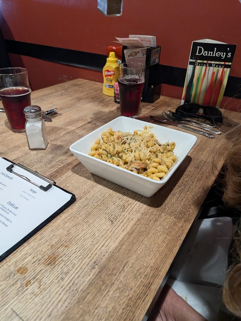 The food was wonderful! House made desserts and some other foods that is pure Danleys. Service was a little thin. I felt like they could use a bit more help. Overall wonderful. My family and I would absolutely eat again. Kid-friendliness: They had nice hight chairs and booster seats and fun kids menus.