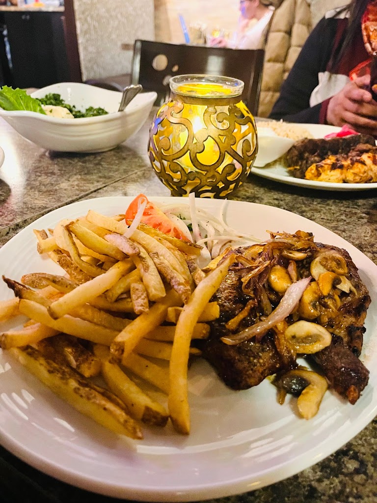 Rest. atmosphere is so depressed. Food: salads selection was ok but the grill platters were really terrible. so tasteless! Price: unreasonably over priced. We were three families, I ordered a chicken shawarma wrap with some bad quality fries and a coke for CAD 25! elsewhere is half price at least!
