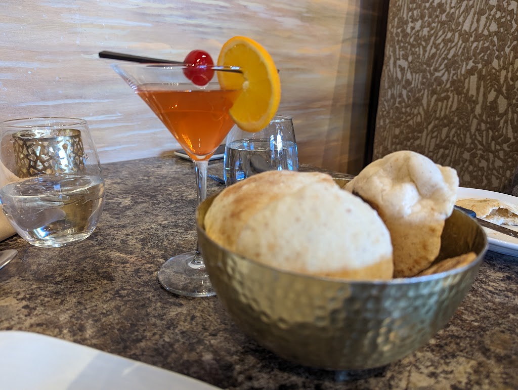 Service was excellent and food was delicious. The fresh warm bread with garlic was probably the best I ve ever had. The selection of drinks was pretty good too. Food