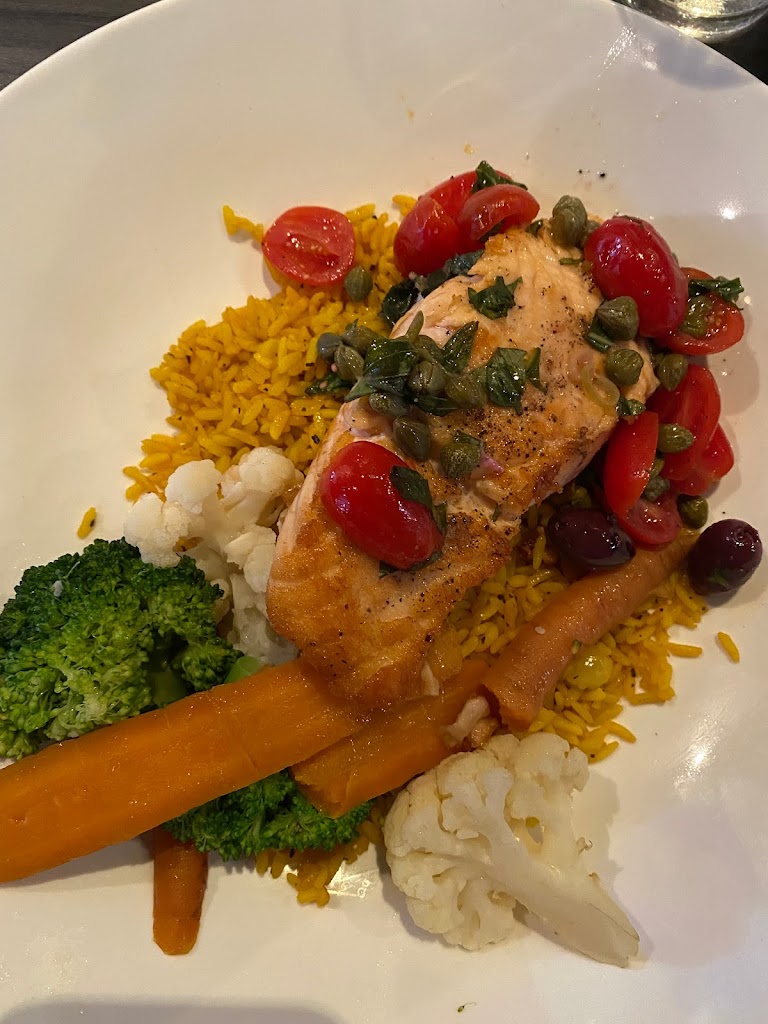Good menu choice. Delicious salmon tartare. Birthdays are celebrated, but the birthday cake arrives well before dessert... Vegetarian options: Fish, pasta. Parking: Difficult to get out of the parking lot.