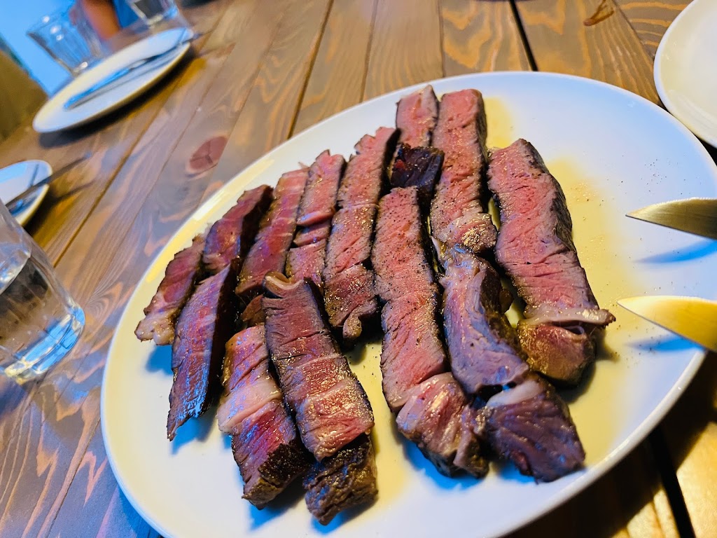 The concept is interesting. On the other hand, I was disappointed with the beef steak which was good but lacked tenderness. I felt like I was eating a simple piece of beef... The burrata is excellent, but I would have preferred a less oily bread to accompany it. Concerning the atmosphere, I must admit that the music ended up irritating me, because the same musical pieces were playing over and over again. I would have appreciated a little more variety. I didnt really like the uncomfortable benches. Maybe Im too old