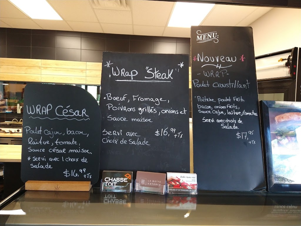 Meilleurs sandwichs de Terrebonne! Servie impeccable, toujours prêts à nous conseiller et nous faire découvrir des nouveautés, le genre de soufflé caramel amande et chocolat est la meilleure pâtisserie que j ai mangé ever! Parking: 10