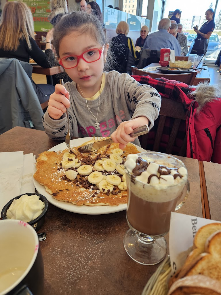Generally correct but nothing more. Every time I go there, there is always something that goes wrong. This time, make a choice, but no longer have any goat cheese. So made another choice, but my plate arrived but really not as the presentation suggested. There was almost no on my bread and no dressing at all. The waitress who tells me they have more. So quite dry. Waitress with zero smile, please and thank you , no service (no water refill, never had my coffee), some very dirty utensils. Parcontre received our plates quite quickly. Very interesting childrens menu, very very good small potatoes and various fresh fruits as an accompaniment . Overall the meals were good. Parking: Large parking lot Kid-friendliness: Affordable childrens menu