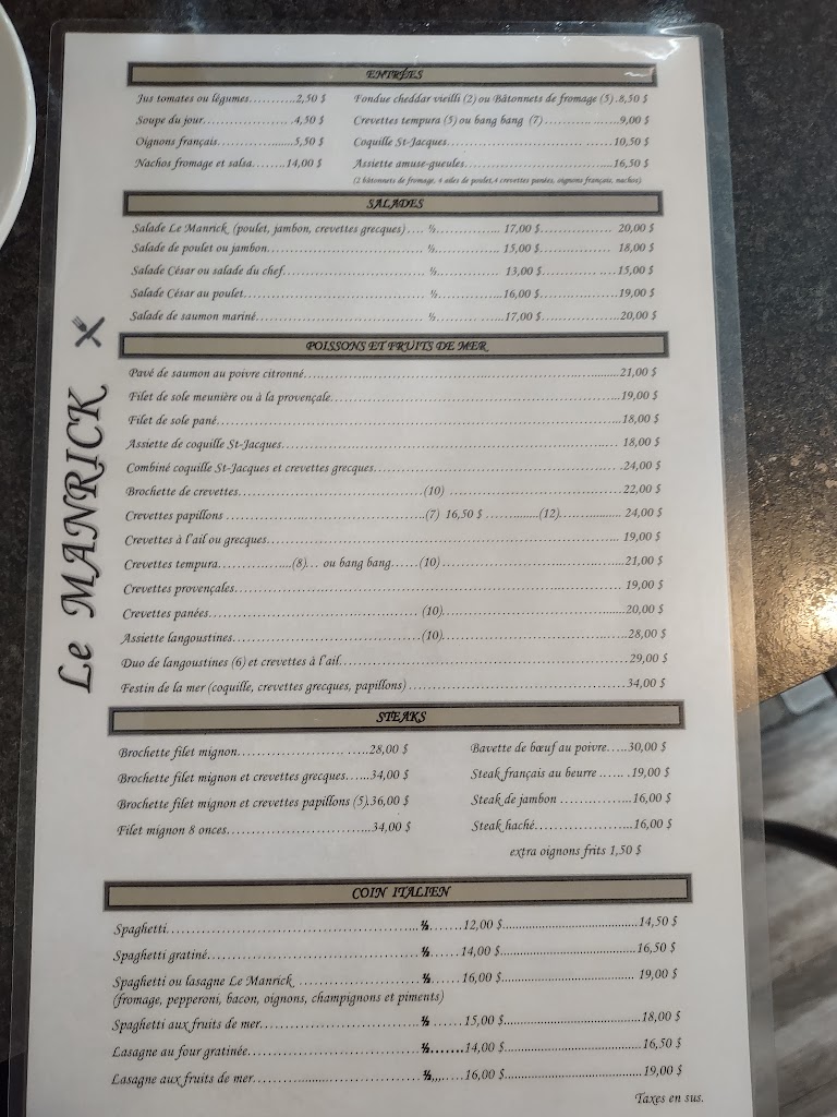 It was really excellent... Fresh quality food, explosions of flavors I was passing through Thetford Mines and its certain that when I return to the area I will make another stop at Manrick!!