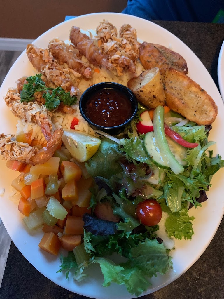Nourriture ordinaire, les crevettes étaient petites, le riz très sec, les légumes goûtaient ceux en canne par contre, la salade était excellente. Le service était ordinaire aussi mais je crois qu il y avait qu une serveuse pour le restaurant complet, donc je peux comprendre. En voyant autant de 5 étoiles dans les Review J ai été déçu..