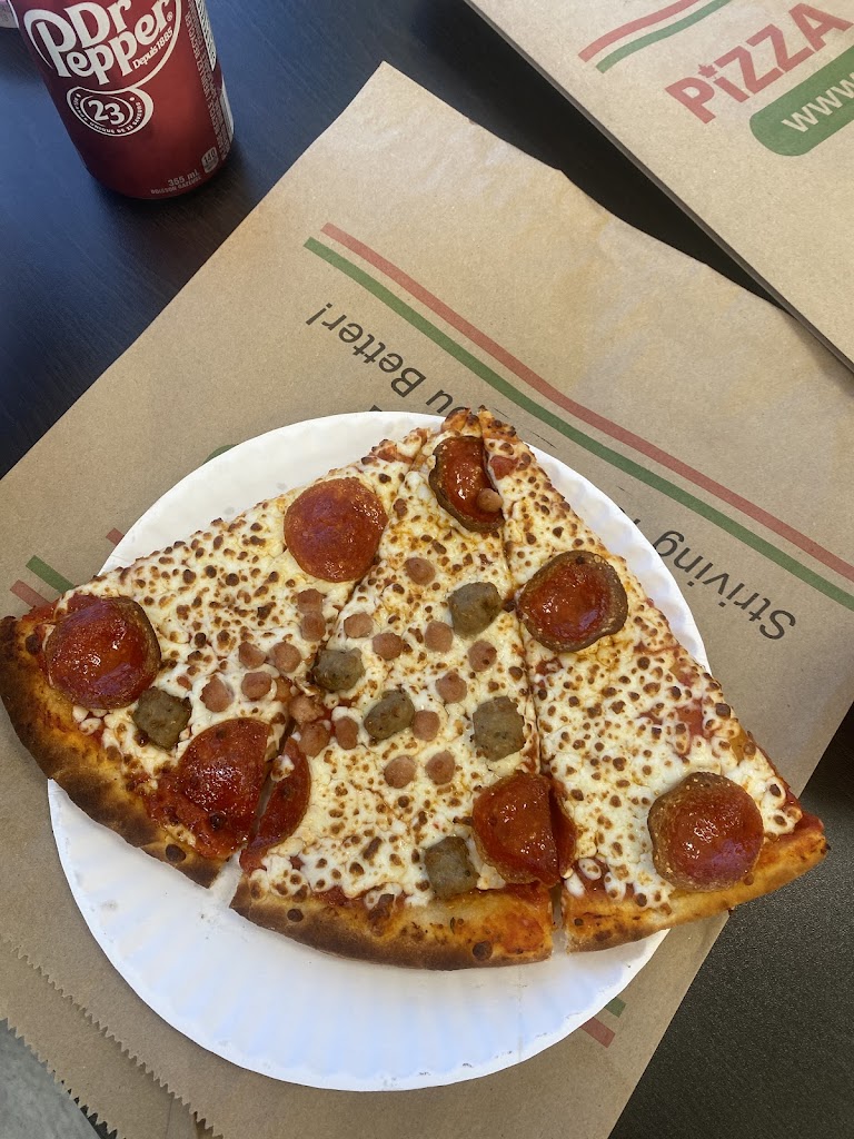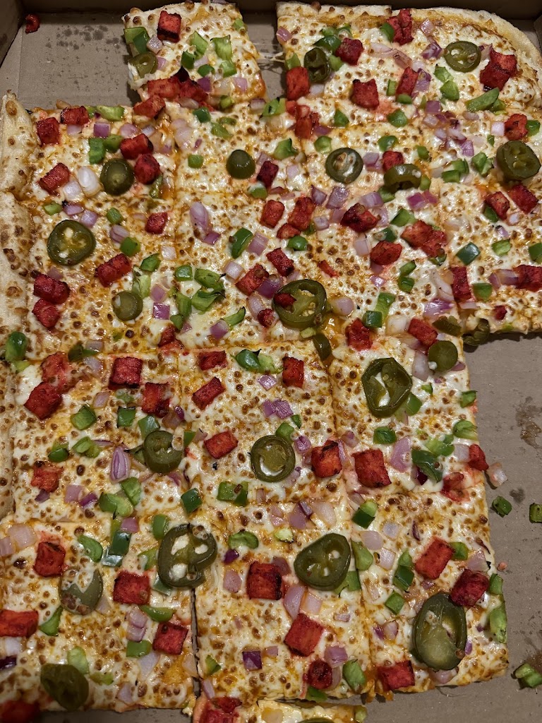Pizza is good but they have limit the amount of toppings like you can see in picture they put one jalapeno on one slice and on some there’s not even one And it’s not first time like this.