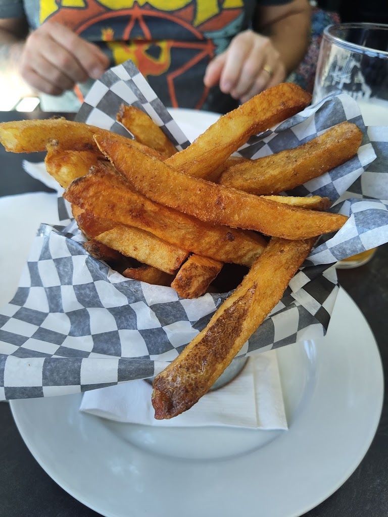 A friend had recommended that I try this restaurant. This place is a bit of a surprise. It doesn't look like anything special, but I have found that a lot of places that don't look like much are often gems in food and service. They had a great playlist that my friend and were singing along to while we waited for our food. Which was actually served quite quickly. The drinks and food were fantastic! The fries were thick cut, perfectly seasoned and served in this cute little tin pale. And then the service... it's the kind you want to tip extra even if you maybe don't have the money. (I feel I should have tipped more 😬, sorry) very sweet and kind people. In summary 😆, you'll love it! If you're hungry and in that part of town, go and get some great food!
