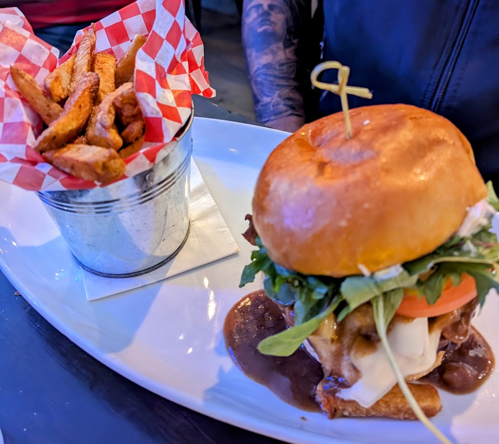 Cosy atmosphere, great food and drinks, and attentive service! Had the Montreal poutine burger and fries with a glass (or two) of the Reif Pinot Noir. This was a great, very filling burger and wonderful fries. Food was served within about ten minutes of placing our order and the service throughout was quick and pleasant. Ill definitely be back for the lobster grilled cheese which everyone seems to be raving about!