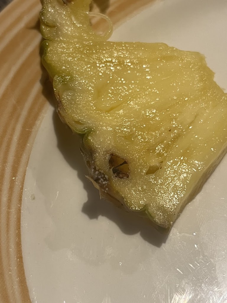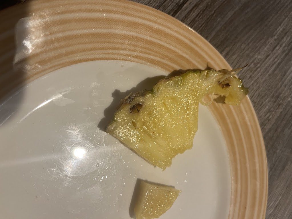 Got TWO pieces of moldy pineapple. First, we noticed the pineapple to be super brown and moldy and politely sent it back with the waiter (the waiter was great, no complaints about him) and he brought out a second piece of pineapple. The second piece of pineapple also had mold on it. We then again, politely sent it back (specified we did not want any replacements) and the waiter came back and said that the management refused to give any discounts on ANY of the order and the waiter came back and said “I can’t give any discounts as they said no but I can bring you replacement pineapple” which did not seem like a great option as two that we already had had mold. We paid FULL and left. Will not return as it is not professional enough to give any kind of courtesy or compensation for their mistakes. P.S. the pineapple pictured is the second piece, the first piece was worse P.S.S as we were walking out we had noticed everyone else’s fruit (pineapple) had the skins cut off (where the mold on ours were).