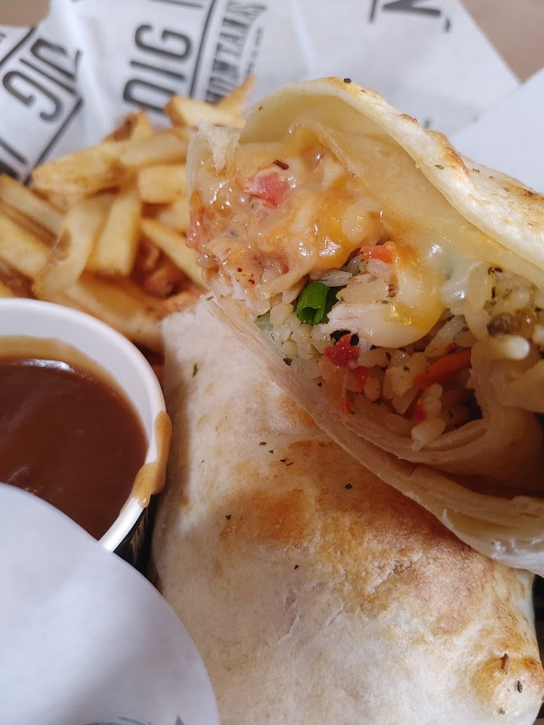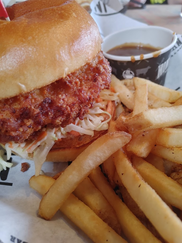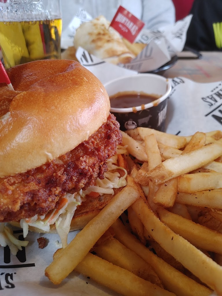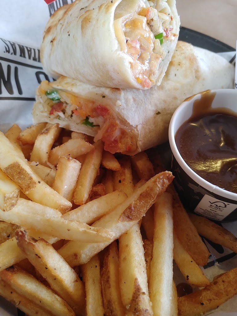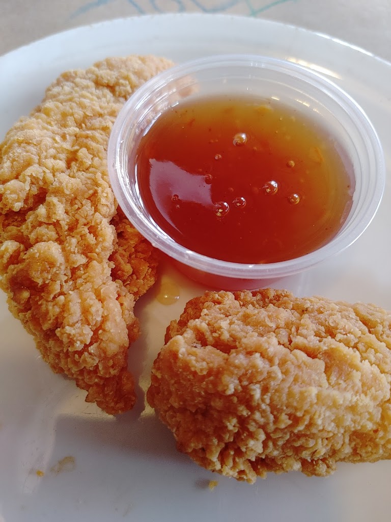 Fried chicken with a white sauce was hot, fresh and simply amazing. Staff are always pleasant and service is excellent. Thank you Steve for the great service, and your upbeat attitude. You rock buddy. Manager, and rest of the staff are also very customer oriented. Great place to go. Sorry about the picture, but better late than never Parking: Lotsss of parking near by Kid-friendliness: Kids seem to love it there