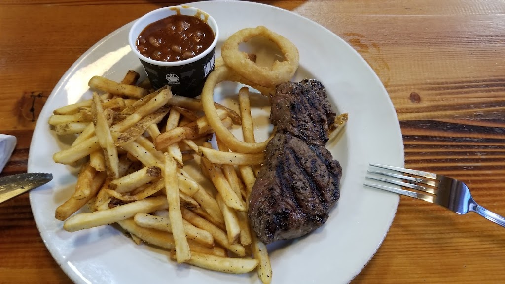 Have eaten at this montanas a couple times while in town for work. In house the service was far from great and the food was mediocre. This last time I decided to use skip the dishes and eat at my motel instead. Ordered a sirloin medium cooked and I guess because I was not in house to complain before paying they picked the worst one. Over cooked and full of fat no even edible. My 6$ side of onion rings came with 4 rings. They took advantage of a take out order worth 60$ that wasn t worth the bag it came in. I love my steaks but will be the last time from this brutal montanas. Casey s has much better service in town and the food is always bang on and priced fair.