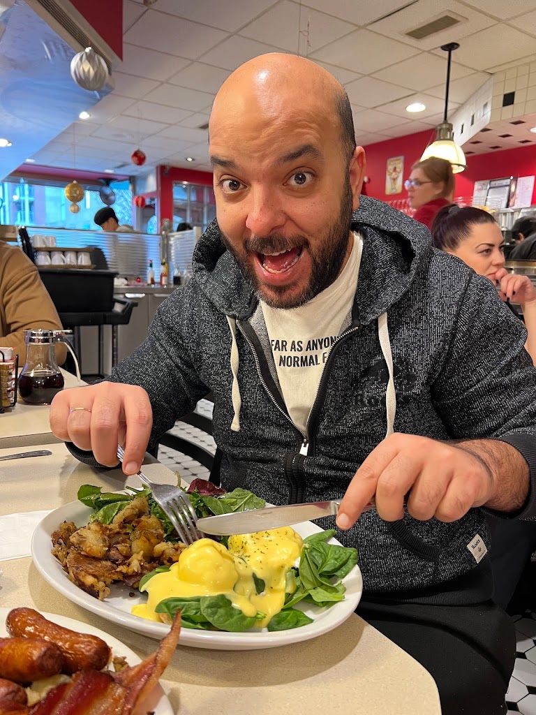 I’ve lived more than 2 years in Midtown and never heard of this 70 years old place. Yes! Believe it or not but this place was founded in 1951!!! They have a very large menu. It is known as a breakfast/brunch place but they also have plenty of selections for lunch or dinner. I was there for a breakfast and I’ve tasted one of the best hollandaise sauce in my life. Florentine is extremely healthy with well-prepared greens on the side. Cooks behind the bar and waiters were very energetic and happy to work with a smiling face. Even though the restaurant was full to the brim, the team was working motivated. Only downside of the place is the size of booths and interior design. It looks like an old diner with lovely red color but there are just too many tables in the available space. Even our 2 plates could hardly fit on our table. Other than that everything was splendid. I recommend you to try this place on weekdays when it is less crowded. A family with a stroller cannot fit. There is not enough tables for larger parties.