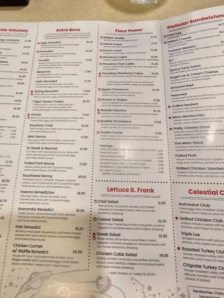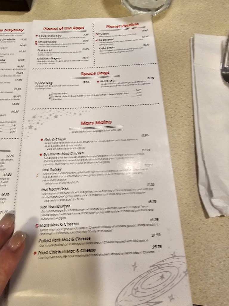 This is a fun traditional style diner that serves incredibly delicious food, fun beverages from the typical to floats. The decor brings you back to simpler times. The service is friendly. Give Mars a try and you will agree that its out of this world.