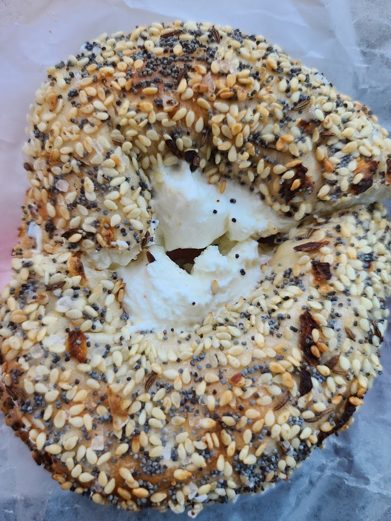 Really good bagels and cream cheese options. Below is a photo of an everything bagel with chili cilantro cream cheese