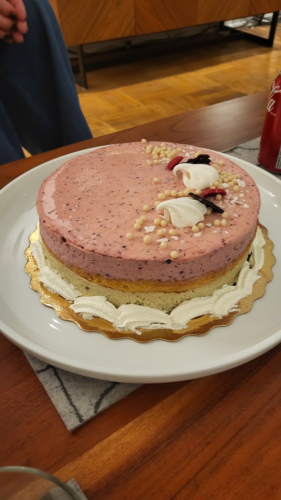 I bought the pistachio and raspberry mousse cake for Thanksgiving, and it was the highlight of the dinner! Everyone loved it—the cake was soft, delicious, and well-balanced. The pistachio and raspberry layers are light and creamy mousse, with a layer of cake in the middle and at the base. The flavors complemented each other perfectly, with just the right amount of sweetness. When I called to place the order, the staff was friendly and helpful, making the process smooth and easy. Pickup was quick, and they had everything ready on time. It not only tasted great but also looked beautiful on the table. It’s an outstanding dessert that I highly recommend!