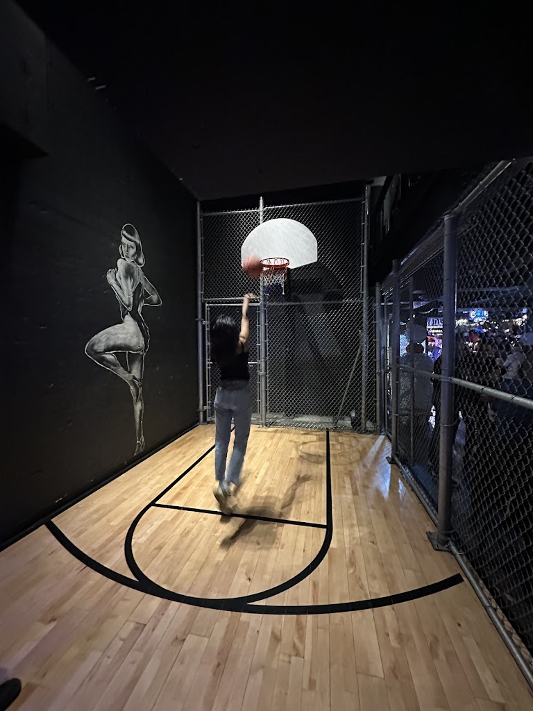 Love the basketball half-court, arcade pinball machines and the vibe. We got here on a December Friday night. Pub style restaurant with a paper menu. Wings & Nachos were awesome. Good place to meet after baseball for a brew or a hangout with a group of people. The crowd age is between mid 20s to mid 30s. We ordered wings and nachos; highly recommend the Korean sauce on wings. It was unique and delicious. Our server tonight was Leigh-Anne and she was attentive and polite. Highly recommend visiting with some pocket change to play the vintage arcade games or pinball. Super fun.