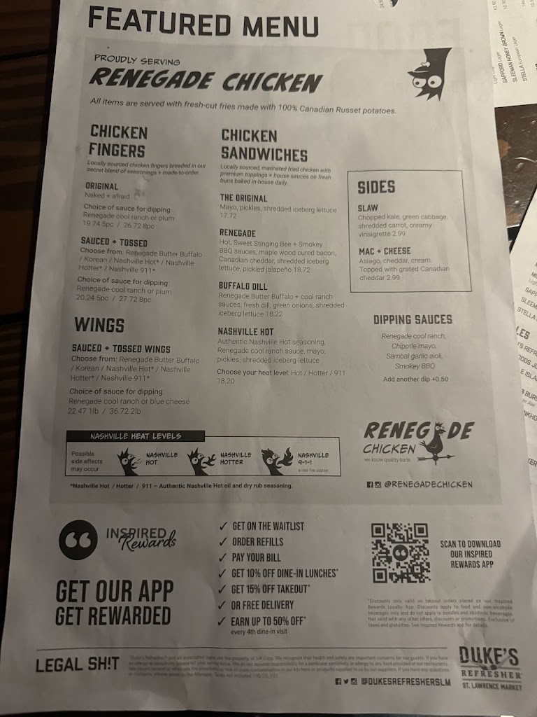 I always enjoy catching up with my old colleague, Francis. He has an insightful perspective on Toronto and knows all the best food spots and bars that I have yet to explore. One of these bars is Duke's—a fantastic place with a great atmosphere and delicious food, especially the wings. The bartenders are a lively group who can brighten your day, and they offer arcade games and other activities for entertainment. The space is quite spacious, with plenty of TVs for watching your favorite sports, making it a relaxed place to spend your time. So, unwind, be kind, and enjoy!