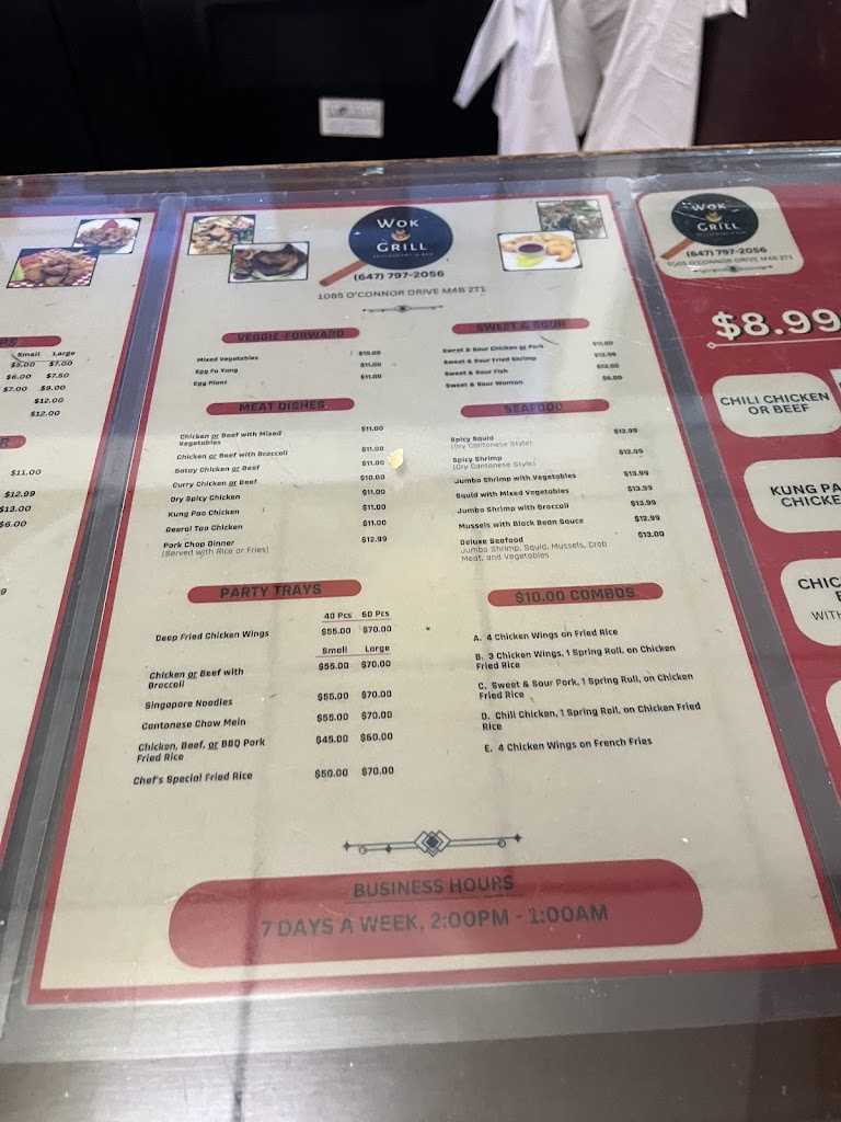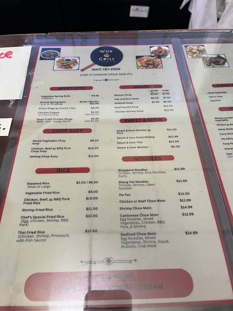 On my way from my job, decided to check out Wok and Grill which was recommended by my cousin. I ordered the Cantonese Chow Mein, fried rice, and Spring rolls. Couldn’t wait to eat. When I opened the Chow Mein. First thing I noticed that the shrimp were the smallest I’ve ever saw in this dish, and they weren’t deveined, the chicken piece were big and the noodles were very dry and hardly any veggies. No way I was eating it. Spring rolls were so small, like the ones you get in the grocery store. I didn’t eat those either. Without the chow Mein, it was no way I was eating the rice that didn’t look the great. $40 down the drain, I should of ordered a Canadian dish. I won’t eat from there again and I certainly wouldn’t recommend this restaurant.
