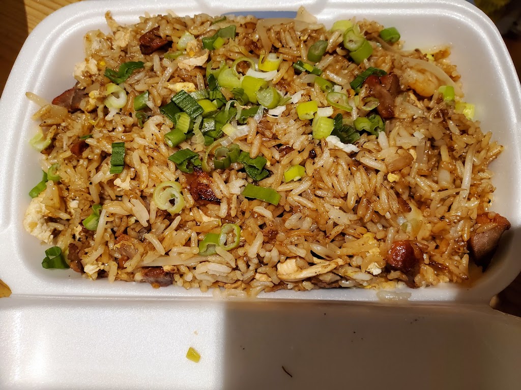 I ordered by phone for pick up an hour and half before I picked up. The owner was friendly on the phone. When I got there he still was cooking it. So wait time was another 10 minutes. The place didn’t look like a restaurant. It had more of a bar feel to it. There was a pool table and a bar behind the cash with liquor and a sign saying $5.50 for shots. A tv on the wall. Plenty of seating. The clientele consisted of 4 elderly guys sitting at a table drinking. My guess is they have lots of locals. There was a customer outside the restaurant, beside the front door smoking and the smell of cigarettes was coming inside the restaurant. The food was ok. I didn’t feel like that there was enough in the containers. It should have been more stuffed. And not enough variety in the cantonese chow mein, lots of onions and watercress. I did like the spring rolls. The rice was small grain and a little hard. There is plenty of parking and they have an outdoor patio.