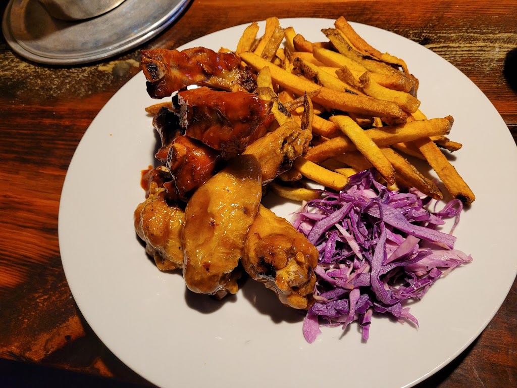 Loved it. The place is large with lots of seating and TVs available. There s a small bar but a pretty wide selection including whisky flights with a small but good selection! The wings are large, fresh, and delicious. The menu is a bit of a mess so it was nice to have the staff explain the different wing styles to us. They do something called a double dipped where they take the wing out of the fryer half way, sauce it, then toss it on the bbq - really gives it a nice unique taste. Will most definitely be going back. Back again and pretty sure my new favourite spot. Flavours are superb and fresh. Friendly staff and lots of seating.