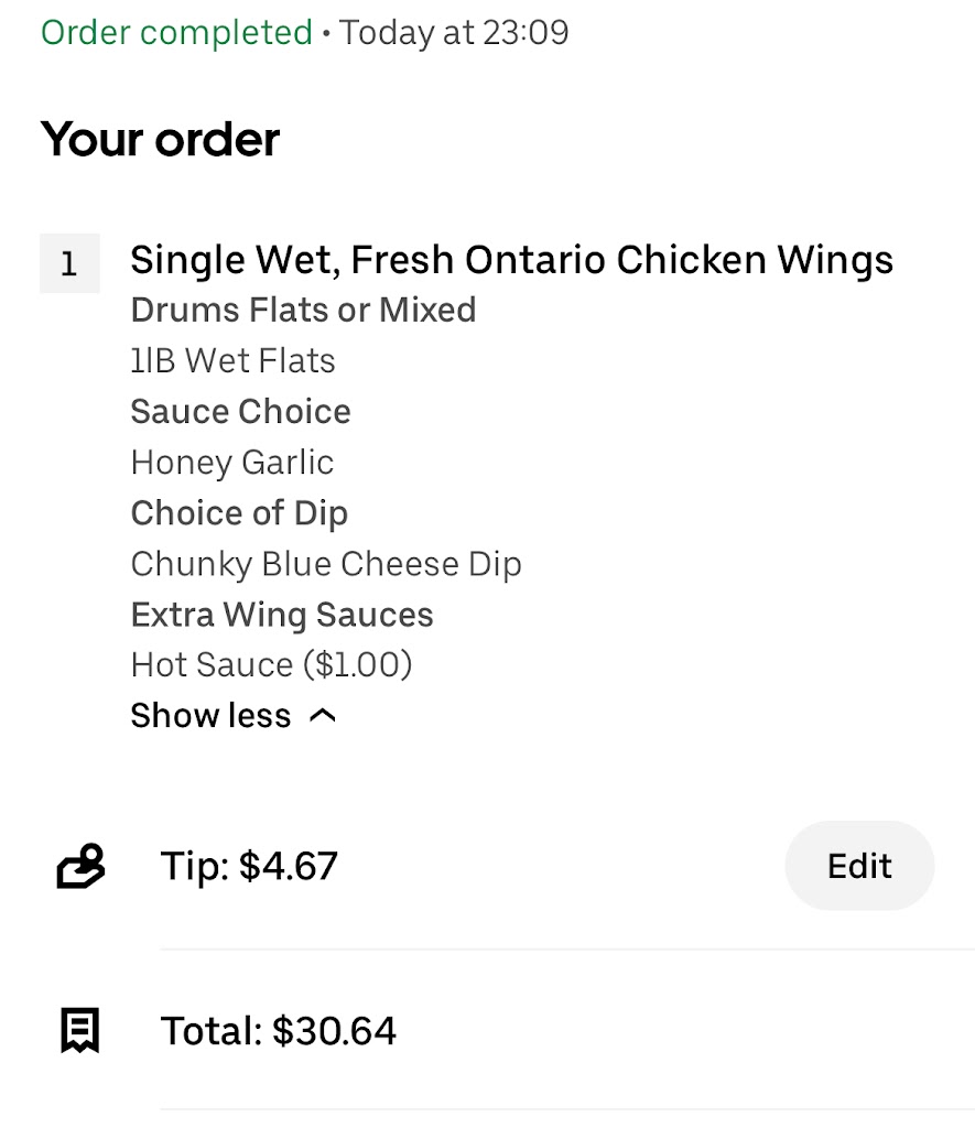 I just spent 70 dollars on skip the dishes for a tiny pepperonni pizza wirh 3 pepperonis on it and 7 tiny wings..the 3 carrots were the best part. Never again!