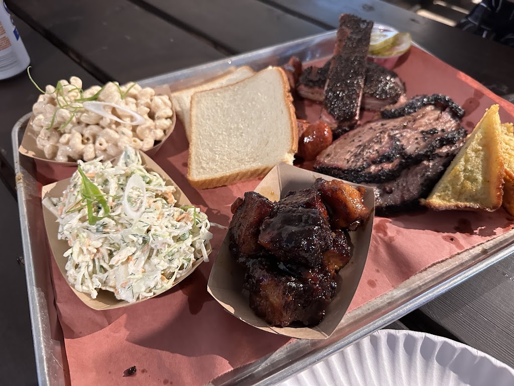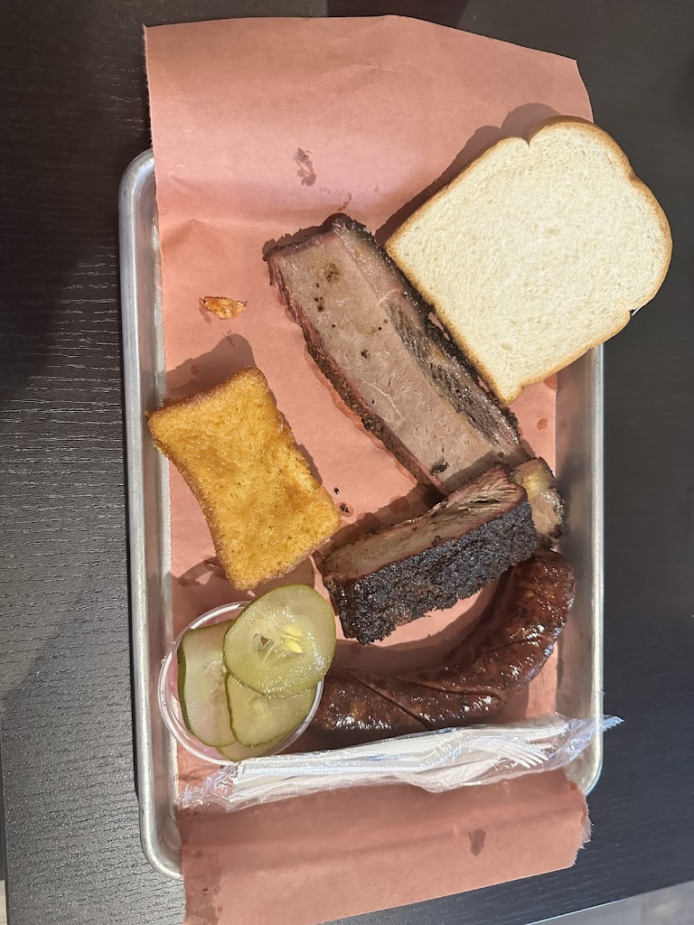 As someone who usually prefers Asian bbq (I got dragged here), I have to say the food was phenomenal so I had to leave a review! Havent had Southern BBQ much but this has been the best Ive had! We got the Texas Trinity for 2 plus some Burnt Ends and a bottle of Jarritos Gauva (personal preference). Everything was so tender and flavourful! The thick pepper crust on the ribs and brisket were much appreciated! We chose the honey cornbread (very slight honey taste) and brisket beans (dont expect too much brisket. I was expecting none and theyd just stew the beans with brisket so the lil meat pieces were a pleasant surprise). Im never really a fan of American-style beans but these were incredibly soft and flavourful! Not a fan of Italian sausage personally. The Burnt Ends were chunky, fatty, and sweet. Will definitely be back! Tip: come early! The pulled pork, brisket beans, and cornbread ran out within the 1-2 hours of opening!