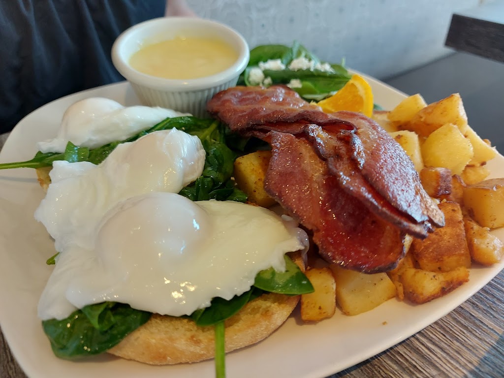 Lovely brunch spot with an extensive breakfast and lunch menu. Stopped by and got the eggs florentine (additional bacon), spinach and feta omelette (additional salmon), and side pancake. All were tasty and the portion sizes were generous. I can see why this spot is full of regulars - the food, service and vibe are all warm welcomes to familiar and new faces alike.