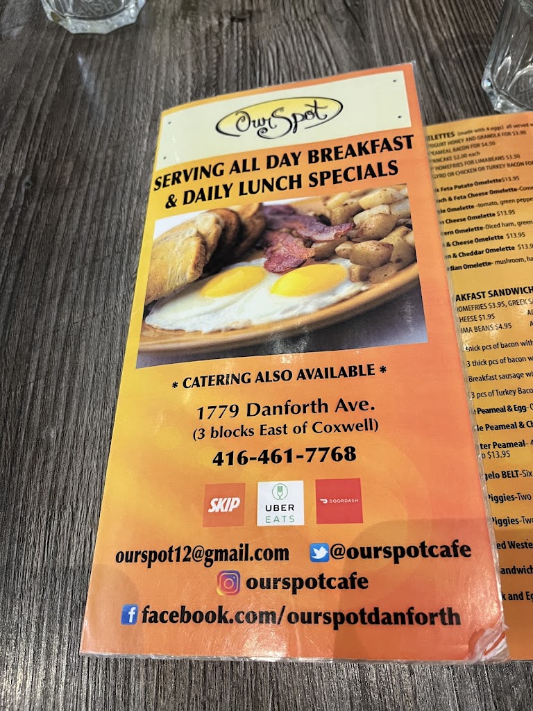 I LOVE Our Spot. It's been a few years since I last came here. This has always been a go to breakfast spot for me and many people I've introduced it to love it. It's got a great family owned feel from the moment you walk in the door. Their new location at Danforth is a great spot. A bit difficult for parking but many side streets to try to find some. The food is EXCELLENT. I was very happy to see that years later my standard breakfast pick with Breakfast Sausages, Rye Bread and Greek Salad has not changed in quality at all! The potatoes have always been some of the best breakfast potatoes I've tasted. Their location is well kept, service is prompt, friendly and inviting and most of all the food is sooooo good! 🤤 Lots of variety to pick from for breakfast from sweet to savory. Absolutely recommend dropping by! Do not skip Our Spot!