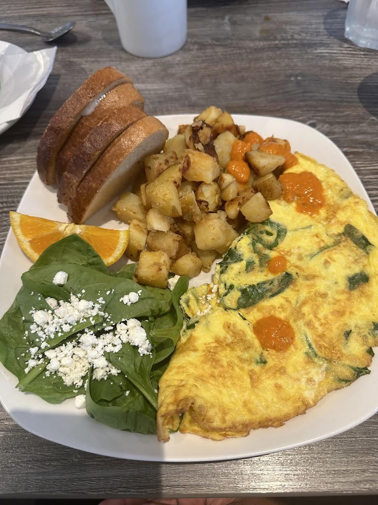 Finally got a chance to visit Our Spot and it was worth the wait!! The place was empty when we got there but it filled up quick. The service was very fast and friendly. I had the Greek Benny and there were 2 more omelets ordered for the table. The food came within 10 mins and the portion sizes were great. Cant wait to come back!!