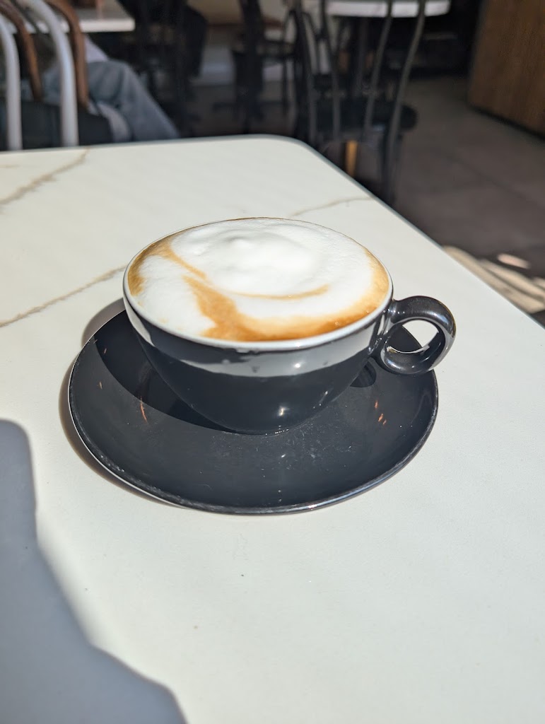 In the heart of the market. Small bright space with additional covered patio outside. Cappuccino had good crema and robust flavour.