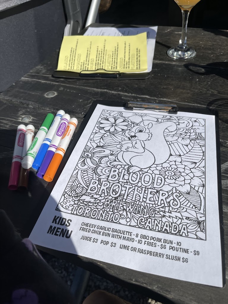 We ve been buying their beer online and finally made it into the tap room itself last night while we were in the city for some dinner (and beer of course). For beer, Blood Brothers takes a lot of risks and while they have some standards that are always available, every time you go in they will have some new options to try. Because they take risks, you re almost certainly going to find beers you love and a few you really don t. If you re like me, trying all the different styles is part of the fun and I d say they hit more often than miss for sure! Onsite there were a lot more options in the bottle shop - the restaurant side was more limited to what was on tap. I didn t see an option to just buy a can from the bottle shop to enjoy at my table but I didn t think to ask either. Food wise I was pleasantly surprised. I will day their menu is limited - they stick to a short list but they do seem to do them all well. I had looked online before we went and the website mentioned a roll out of a southern comfort menu which seemed really meat heavy. I m a vegetarian so I was thinking I might get stuck eating a salad. However the menu on location was different than online and I ended up having a really tasty squash plate with enoki mushrooms and the pickled appetizer which was mostly olives with some pickled veg (also tasty). My husband ordered a pork sandwich that he enjoyed and some poutine, which I did try. We both enjoyed that but their sauce did taste like it had some tomato mixed in which has us split a bit. The sandwich came with fries too so it was a lot of food but we skipped lunch so are eyes were a bit bigger than our stomachs. Overall, we enjoyed the space, the food, and the beer. I would recommend checking it out to any beer lovers in you re nearby. Parking was a bit challenging but it was Sat night in Toronto so .